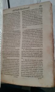 Another new arrival to Special Collections' Las Casas collection is a perfect example of these European concerns. It is a Venetian edition of the text, printed in 1626. While we may think of Venice as being a long way from the problems of the people of Mexico, it was in frequent conflict with Spain; so books like this would have been popular. Due to a variety of circumstances, largely based on inheritance, the Spanish crown in the seventeenth century also controlled considerable territory in Italy, as well as in the Low Countries and in what is now eastern France. Venice and Spain were therefore rivals for influence in and control of the Italian peninsula. In this case the printer took the unusual step of making a dual-text edition. The new acquisition is printed in two columns, one in Spanish and one in Italian. So although this was acquired by the library to be used in Hispanic Studies and History classes, if there is anyone who understands one of those languages and wants to learn the other while reading descriptions of Spanish imperial activities in Mexico, we now have the perfect resource.
